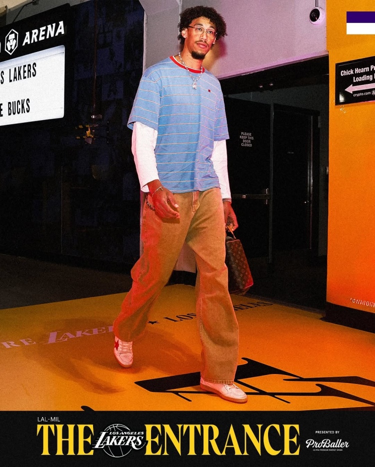 2025-03-21 10:00:33湖人众将入场穿搭:文森特墨镜配项链 布朗尼蜘蛛连帽衫