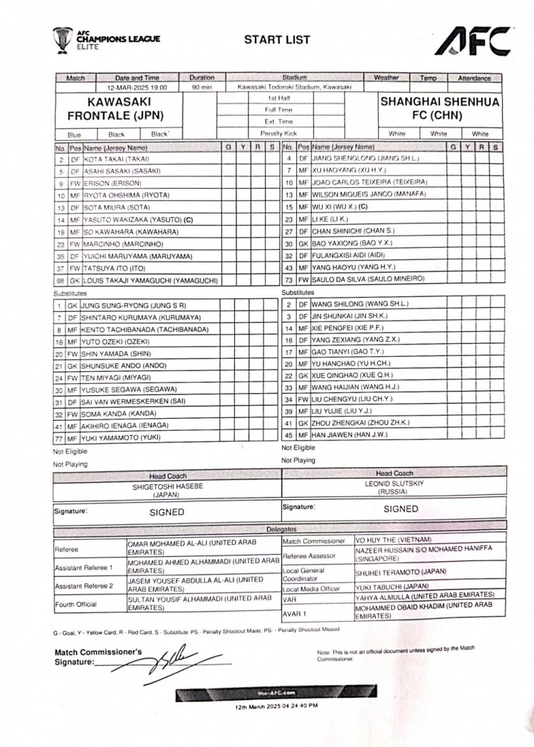 2025-03-12 20:45:54亚冠精英联赛1/8决赛次回合 川崎前锋vs上海申花首发名单