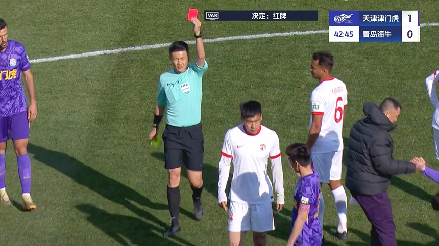 2025-03-29 20:27:44海牛少打一人!金洋洋侧面飞铲哈达斯,VAR改判直红将其罚下!